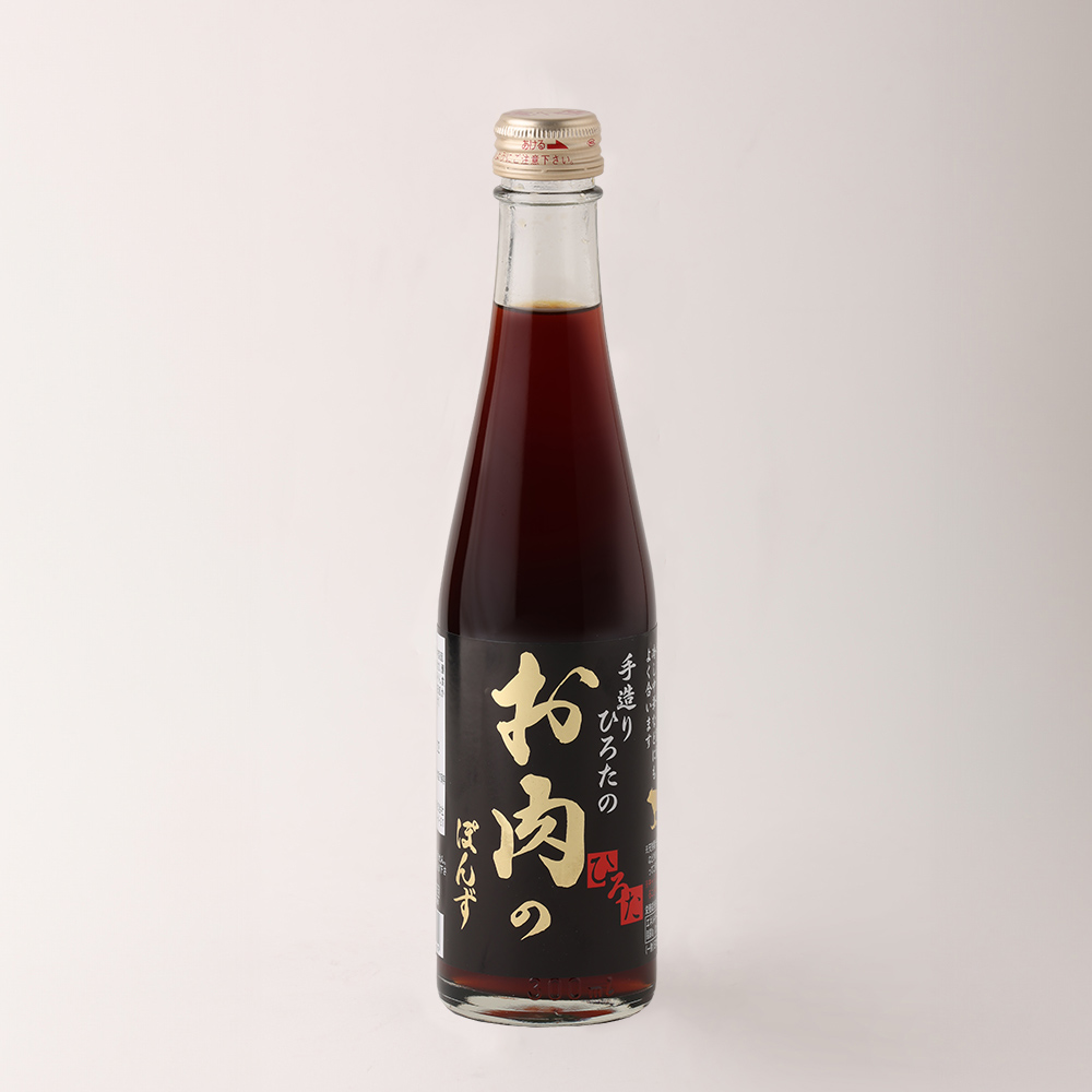 【お肉のぽんず】エネルギー14kcal、たんぱく質0.6g、脂質0g、炭水化物2.9g、食塩相当量1.1g - 原材料名